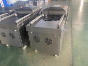 工作原理:首先合上設(shè)備上蓋,真空泵開始從工作室中抽出空氣,當(dāng)達(dá)到所設(shè)定的抽氣時(shí)間時(shí),真空泵停止工作(帶充氣功能的設(shè)備開始填充保護(hù)氣體),然后加壓閥自動打開,氣囊充氣,氣囊托板、酚醛板、加熱條整體向下壓緊封口處,同時(shí)通電給加熱條加熱,當(dāng)包裝袋封口完備后,加熱條停止加熱處于持續(xù)冷卻狀態(tài),放氣閥自動打開、放入空氣、開蓋,完成一次工作循環(huán)。